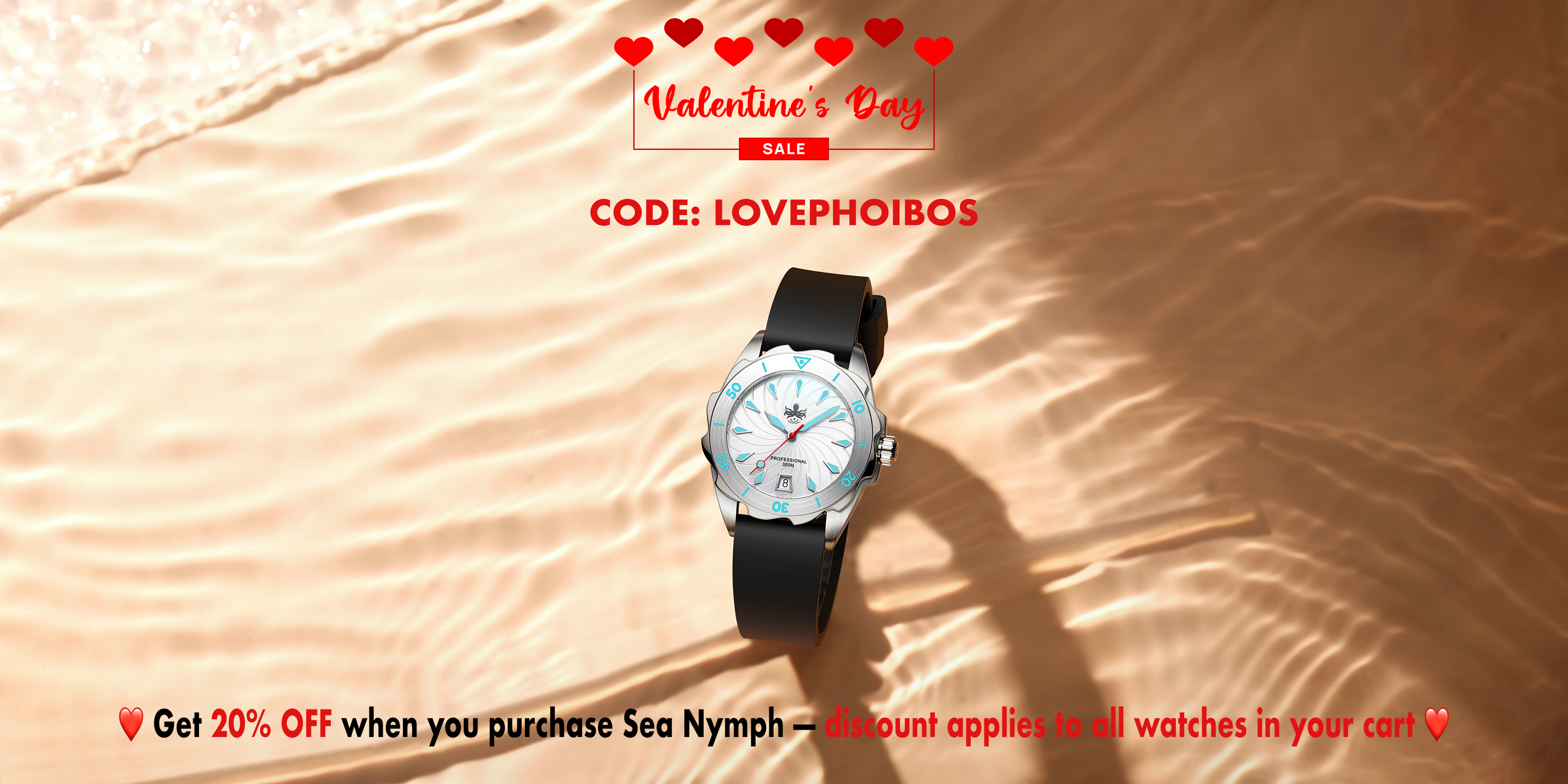 PHOIBOS SEA NYMPH 300M Quartz Lady Diver Watch PX021C Black